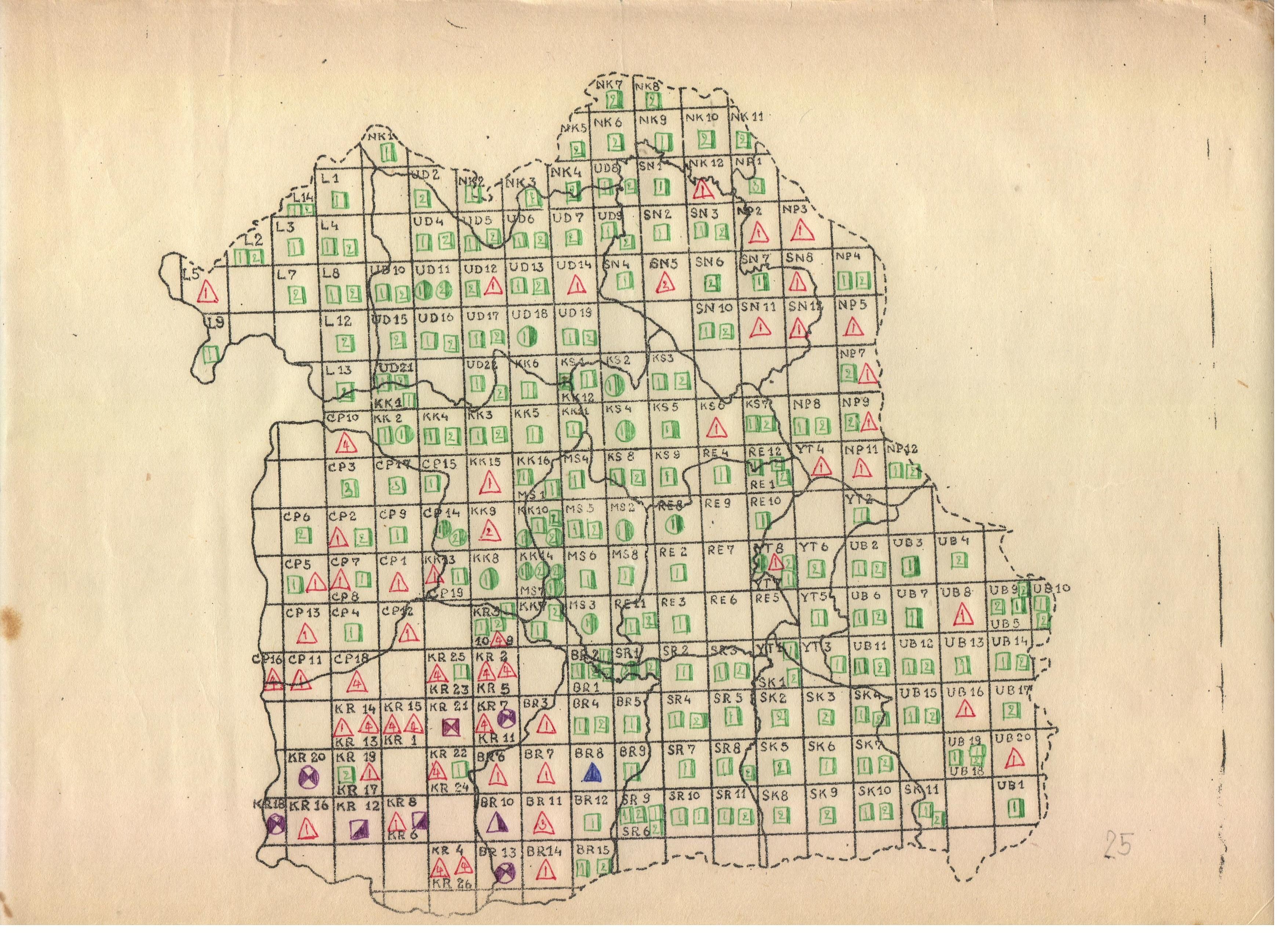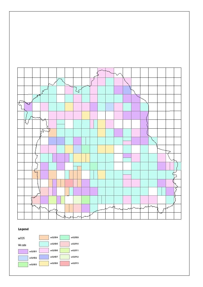 - แผนที่เชิงเลขตารางกริดใหม่ โดยพยายามสร้างให้สอดคล้องกับแผนที่แผ่นกระดาษมากที่สุด จากการใช้แผนที่เขตการปกครองระดับจังหวัดในปีปัจจุบันเป็นข้อมูลฐาน นอกจากนี้ ยังต้องทำการปรับตารางกริดให้มีตารางกริดย่อยลงไปในพื้นที่บางส่วน เพื่อให้สามารบันทึกข้อมูลคำศัพท์ที่ทำการสำรวจมาลงได้ทั้งหมด ดังตัวอย่างในภาพที่ 3 ซึ่งแสดงตารางกริดย่อยในบางพื้นที่