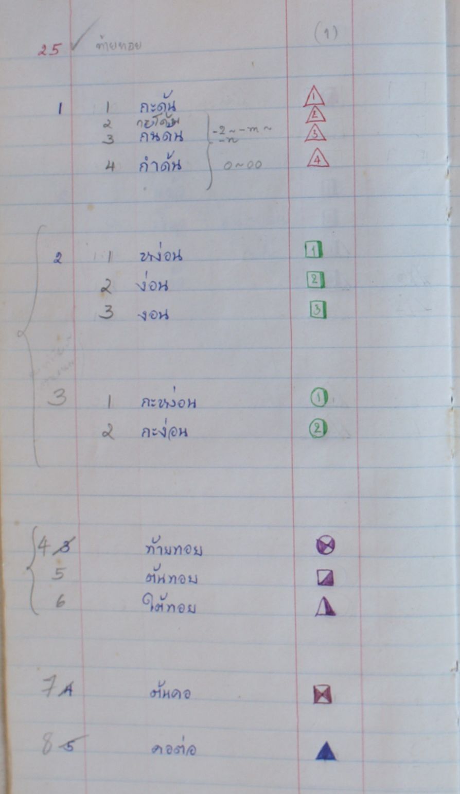 - ข้อมูลรหัสและคำศัพท์ประกอบแผนที่ ซึ่งจัดเก็บไว้ในหนังสือ Logbook ดังตัวอย่างที่แสดงไว้ในภาพที่ 2 ใช้แสดงรหัสและคำศัพท์ที่พบของหน่วยอรรถ “ท้ายทอย” เพื่อประกอบข้อมูลแผนที่