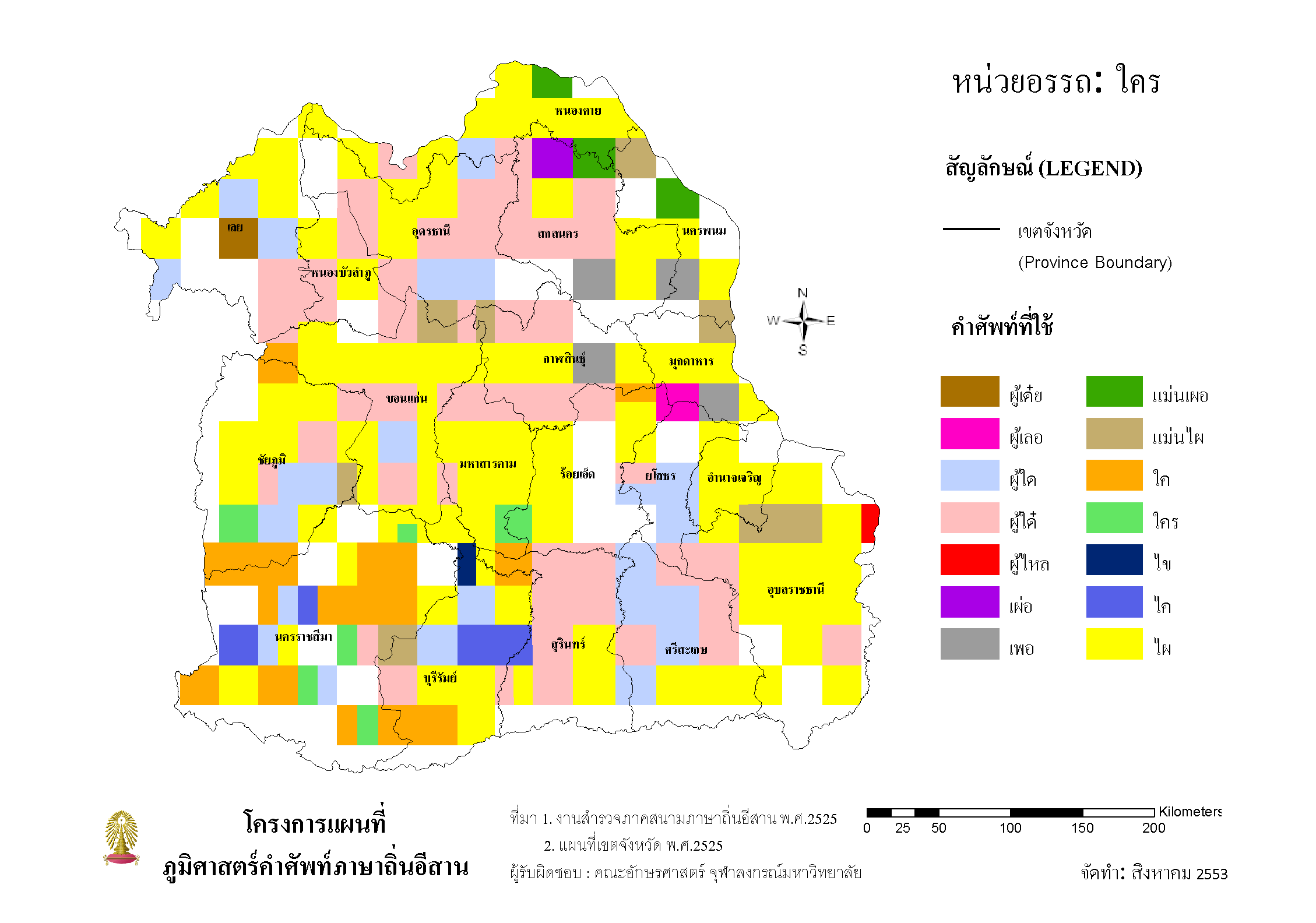 2568 สงวนลิขสิทธิ์โดย โครงการภูมิศาสตร์ภาษาของประเทศไทยบนระบบสารสนเทศภูมิศาสตร์ (GIS-based Linguistic Geography of Thailand Project)
