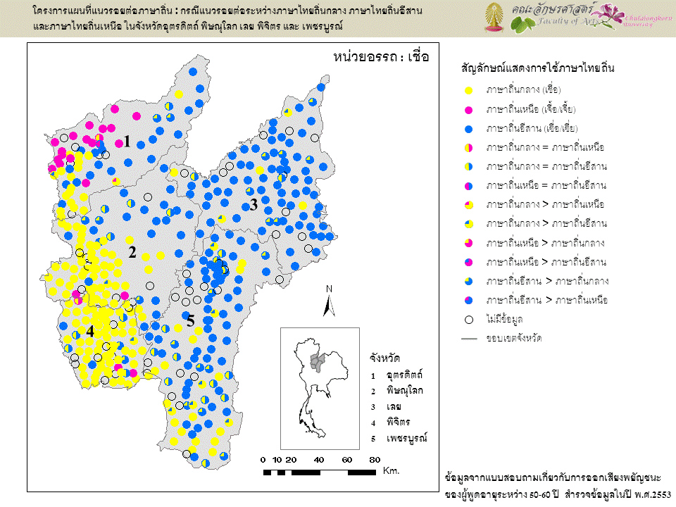 2568 สงวนลิขสิทธิ์โดย โครงการภูมิศาสตร์ภาษาของประเทศไทยบนระบบสารสนเทศภูมิศาสตร์ (GIS-based Linguistic Geography of Thailand Project)